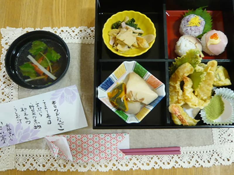 入浴、朝の歌、ラジオ体操・口腔体操など