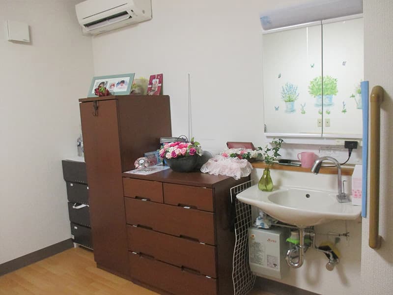 - 洗面所、たんす、介護用ベッド、ナースコール、エアコン
