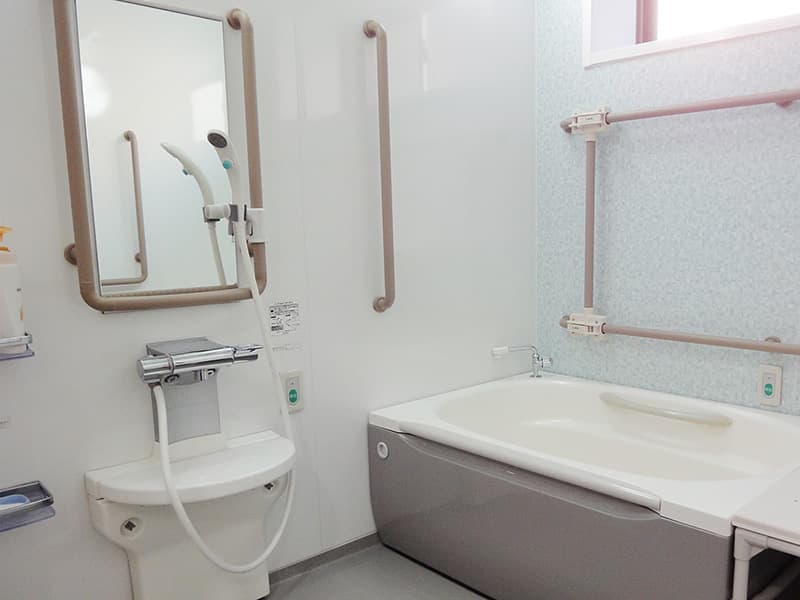 - 談話コーナー、ミーティングルーム、憩いの庭、たたみコーナー、洗濯コーナー、キッチン、ユニットバス(2カ所)