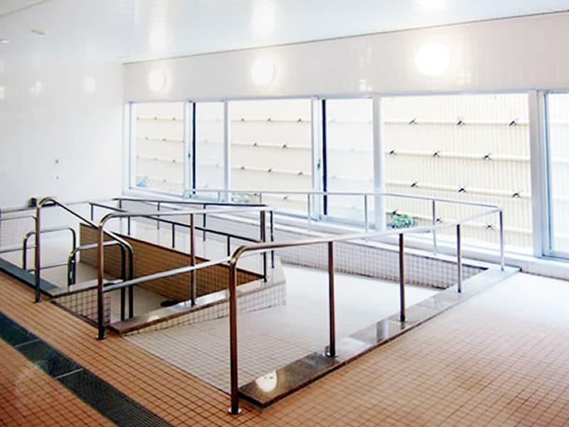 - 地域交流スペース、中庭(交流広場、談話コーナー、図書コーナー、会議室、機械浴室(寝浴タイプ・座浴タイプ)、大浴場、ユニットバス(3カ所)、理美容室、医務室、洗濯コーナー(8カ所)、職員食堂、ミーティングルーム、非常災害倉庫、相談室、リビング、キッチン(7カ所)、厨房、自動販売機