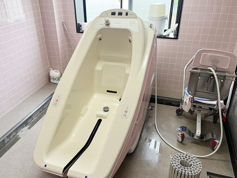 - 地域交流スペース、談話コーナー、機械浴室(座浴タイプ)、ユニットバス、厨房、自動販売機